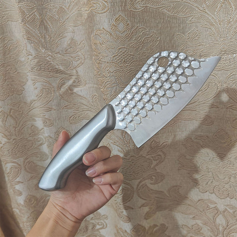 Forgiata in acciaio inossidabile di alta qualità della serie 3Cr, questa mannaia offre eccezionale resistenza, resistenza alla corrosione e un'affilatura di lunga durata. Facile da pulire (si consiglia il lavaggio a mano) e costruita per resistere all'uso quotidiano in cucina – niente più sostituzioni di coltelli opachi e fragili ogni pochi mesi.