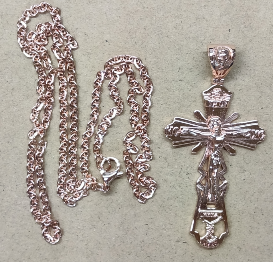 Porta con te il potere della protezione divina, ovunque ti porti la vita. Questa collana con pendente a forma di crocifisso ortodosso, realizzata a mano, fonde la tradizione spirituale con un design audace e lussuoso. Raffigurante Gesù Cristo sulla croce, circondato da sacre iscrizioni ortodosse, simboleggia fede, protezione e forza interiore.