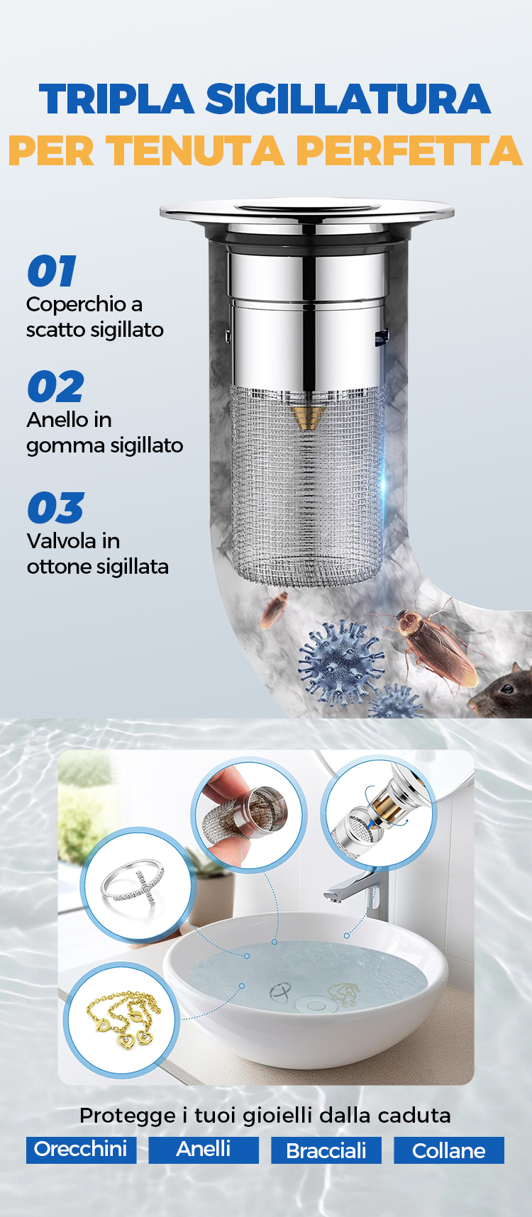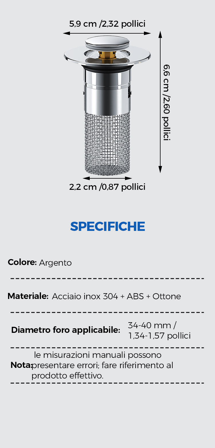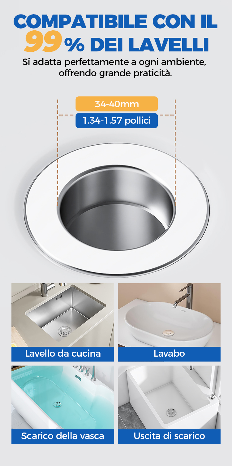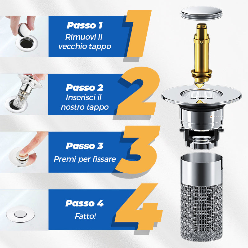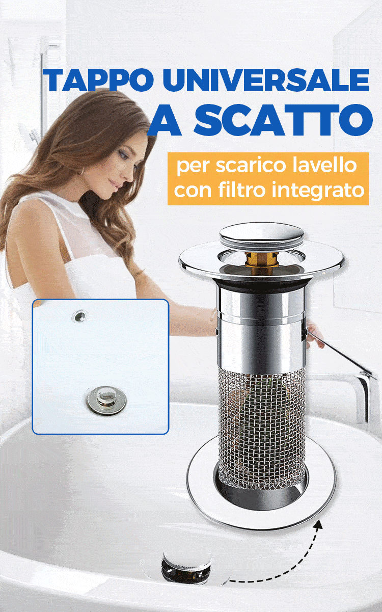 Filtro scarico pop-up universale per lavello
