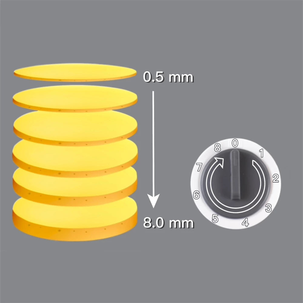 [Multifunzionale] Le lame offrono flessibilità per tagliare, affettare, grattugiare, tritare frutta e verdura in varie forme e dimensioni. Ad esempio, puoi ottenere fette normali o ondulate da una patata o sminuzzarla facilmente.