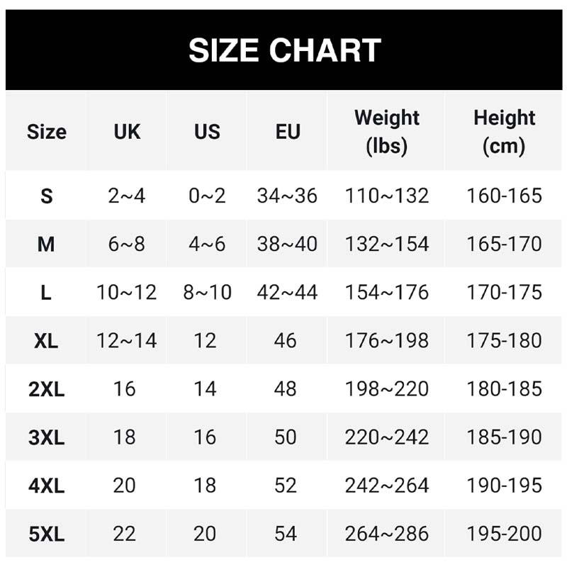 Taglie: S, M, L, XL, 2XL