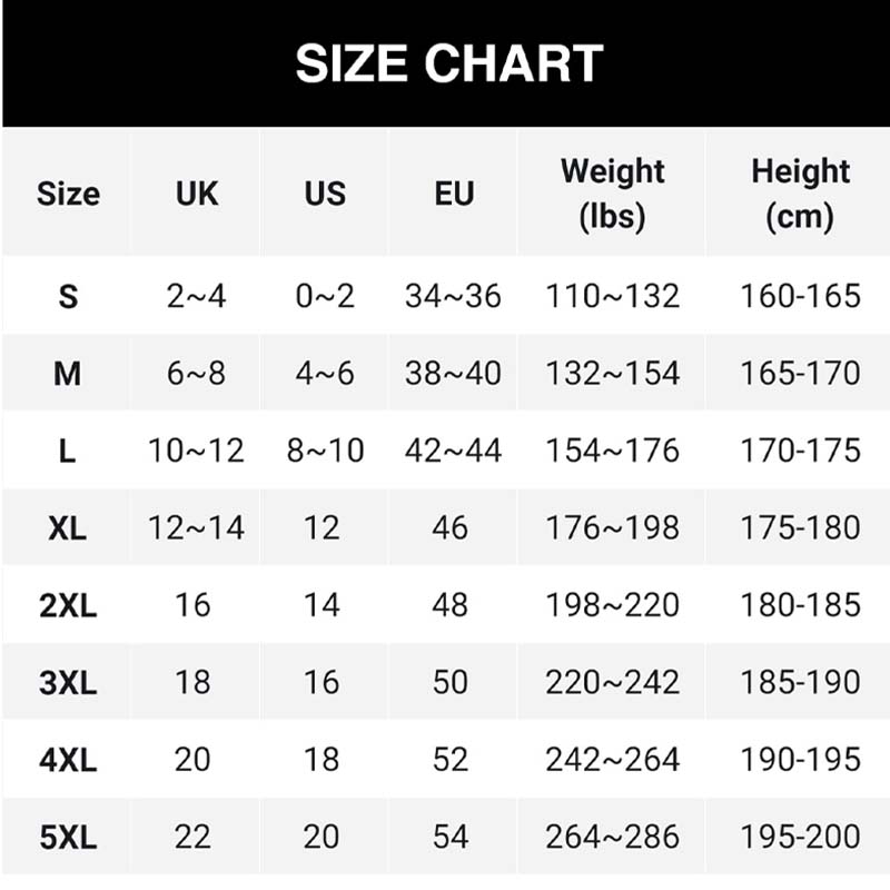 Taglia: S, M, L, XL, 2XL, 3XL, 4XL, 5XL